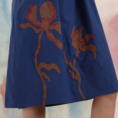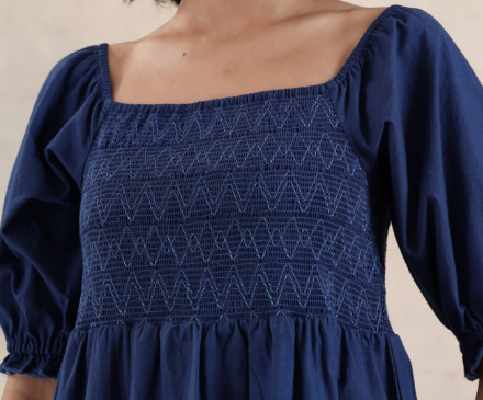 A smocked cotton dress with balloon sleeves and palm appliqué detailing.