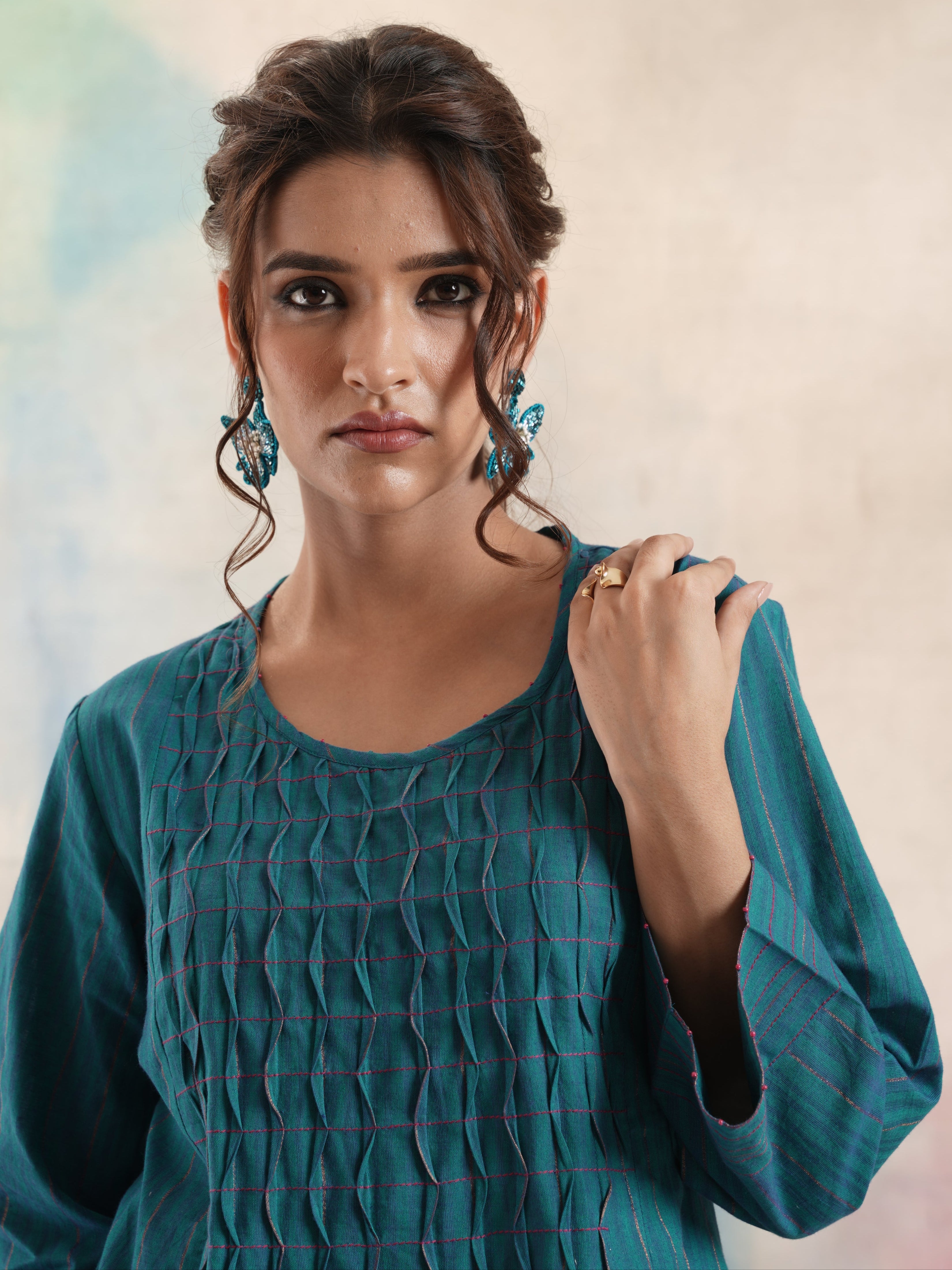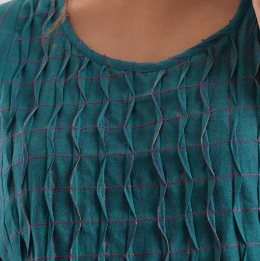Women's Teal Ruching Kurta Set