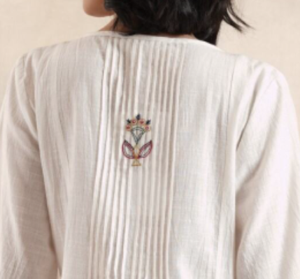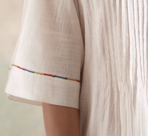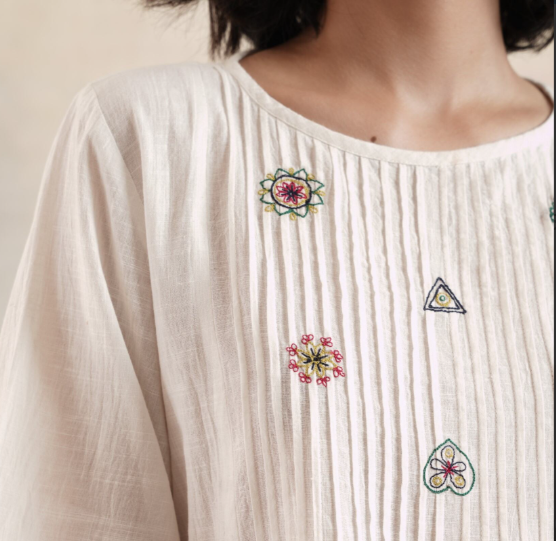 A timeless, pure cotton embroidered tunic with pintuck detailing.